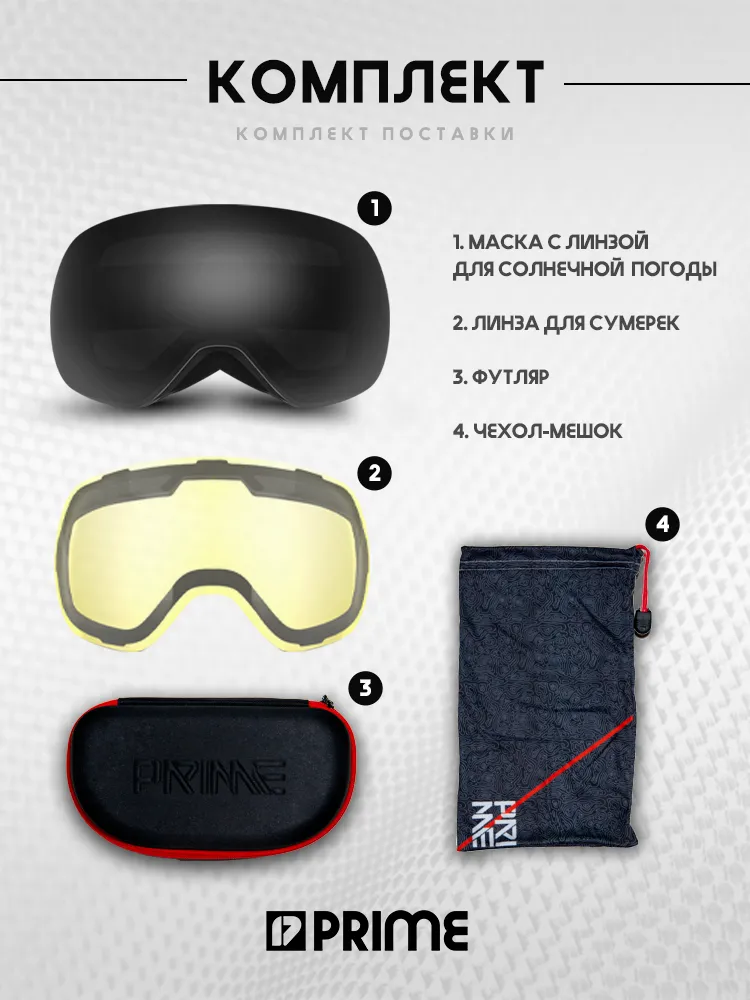 Защита глаз в горах и на лыжном склоне — с этим маска справляется на 100% и вот почему: каждая маска комплектуется двумя двойными линзами для пасмурной и солнечной погоды.