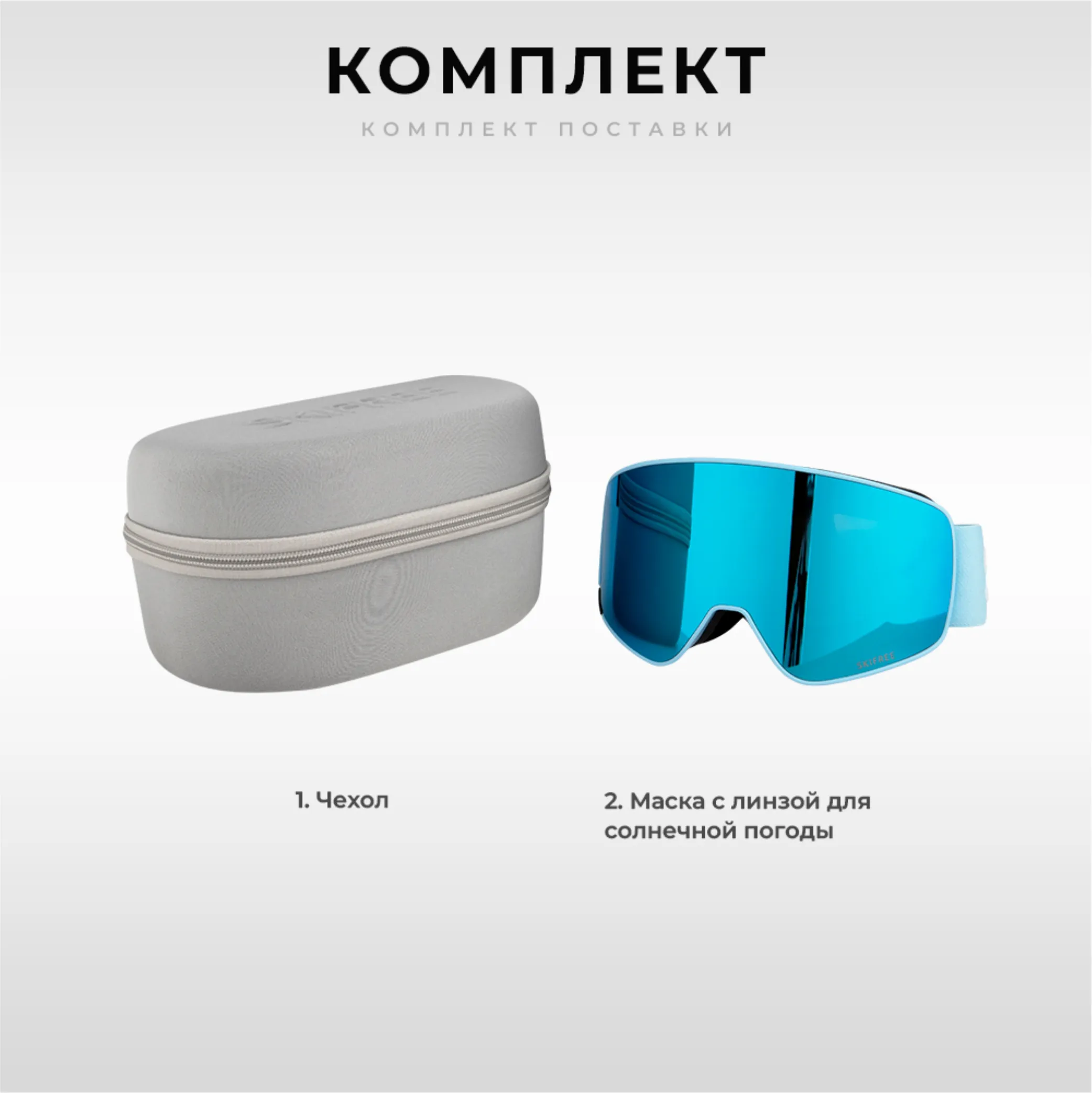 Кроме того, маска снабжена мешочком для переноски и чехлом.